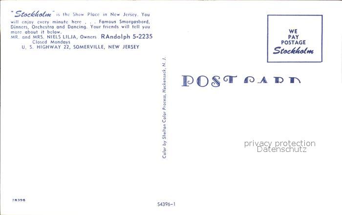 71954699 Somerville New Jersey Stockholm Restaurant postalisch nicht gelaufen Erhaltung siehe scans KatCode: 14140320000000