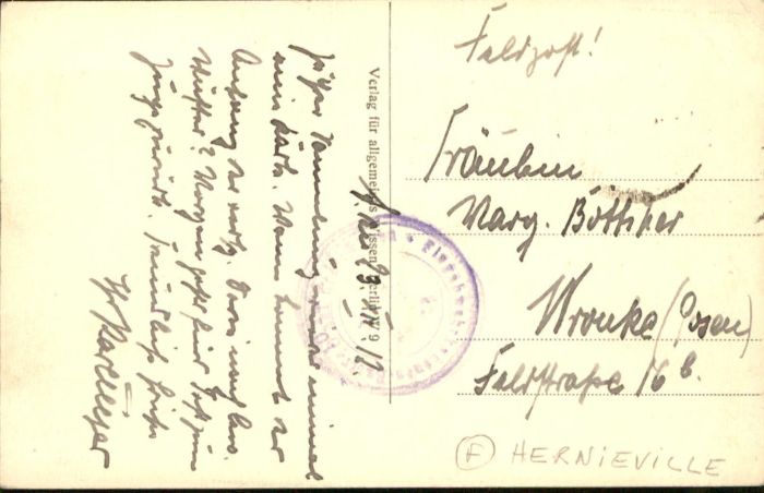 10821979 Somme Departement Hernieville Kirche Zerstörung Ruine WK1 Feldpost KatCode 11170080280021