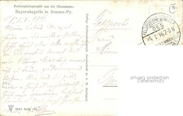 12190009 carte postale Somme-Py-Tahure Bayernkapelle postalisch gelaufen Feldpost Erhaltung siehe scans KatCode: 11170051551544
