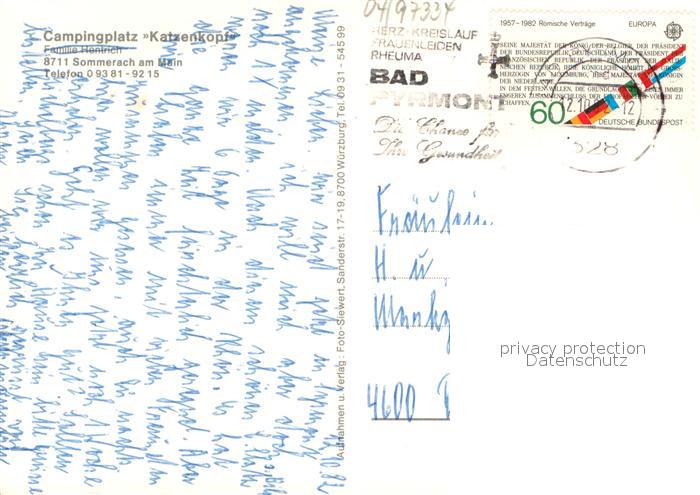 73670883 alte Postkarte Sommerach Campingplatz Katzenkopf Fliegeraufnahme Bootshafen postalisch gelaufen Erhaltung siehe scans [WerneD78] KatCode: 11110009675169