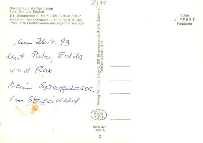 73894421 Sommerach Gasthof zum weissen Lamm Gastraeume Gaestezimmer postalisch nicht gelaufen Erhaltung siehe scans [WerneD78] KatCode: 11110009675169