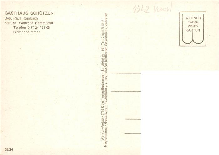 73938250 Sommerau St Georgen Gasthaus Schuetzen Pension postalisch nicht gelaufen Erhaltung siehe scans [WerneD78] KatCode: 11110008326052