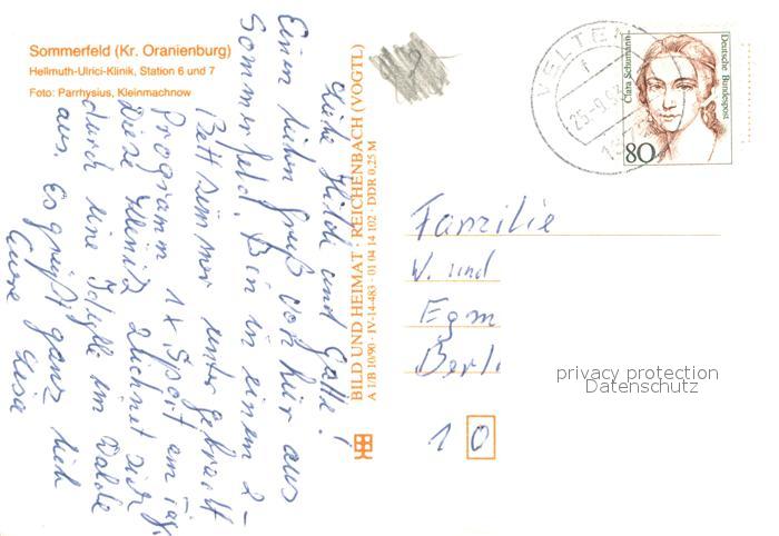 73743669 alte Postkarte Sommerfeld Kremmen Hellmuth Ulrici Klinik postalisch gelaufen Erhaltung siehe scans [WerneD78] KatCode: 11110012065165