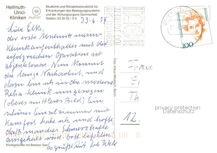72986474 alte Postkarte Sommerfeld Kremmen Hellmuth Ulrici Kliniken postalisch gelaufen Erhaltung siehe scans [WerneD78] KatCode: 11110012065165