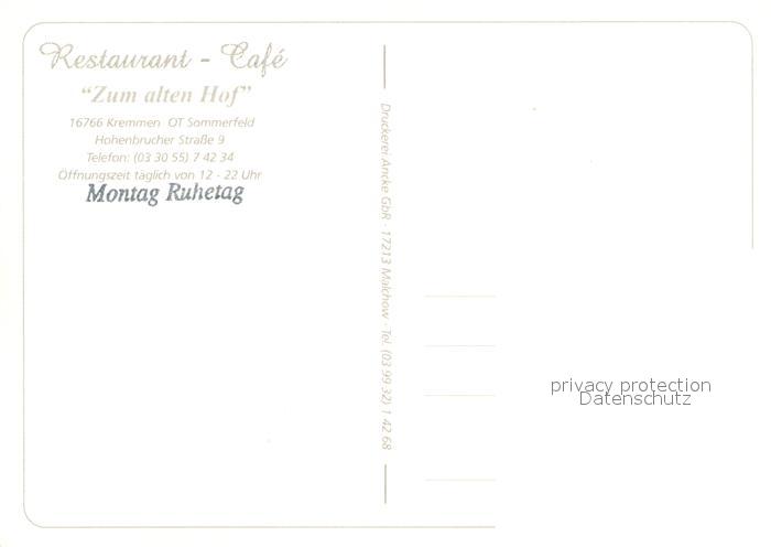 73646677 Sommerfeld Kremmen Restaurant Cafe Zum alten Hof Terrasse postalisch nicht gelaufen Erhaltung siehe scans [FriedD77] KatCode: 11110012065165