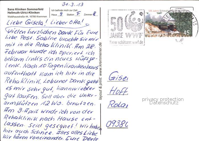 72410010 alte Postkarte Sommerfeld Kremmen Sana Kliniken postalisch gelaufen Erhaltung siehe scans KatCode: 11110012065165
