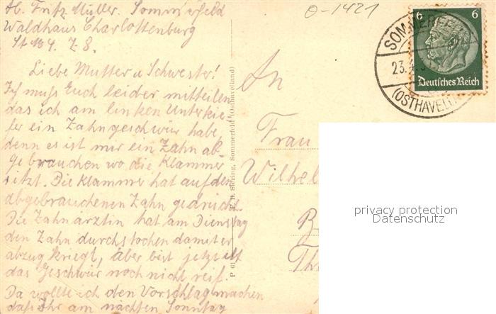 43352484 alte Postkarte Sommerfeld Kremmen Waldhaus Charlottenburg postalisch gelaufen Erhaltung siehe scans [WerneD78] KatCode: 11110012065165
