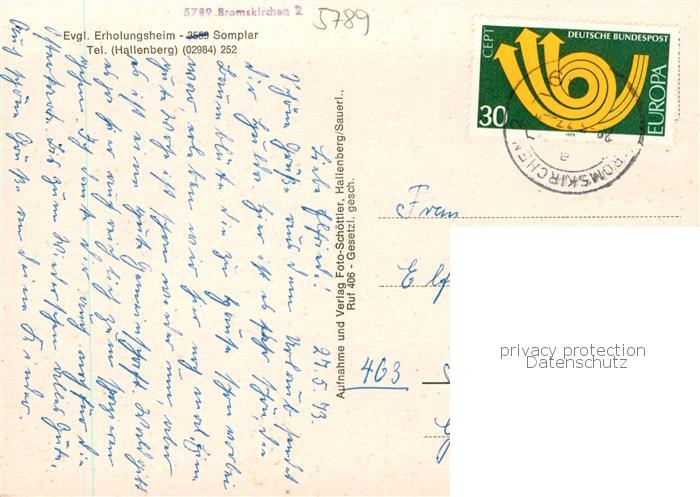 73870223 alte Postkarte Somplar Ev Erholungsheim postalisch gelaufen Erhaltung siehe scans [WerneD78] KatCode: 11110006635005