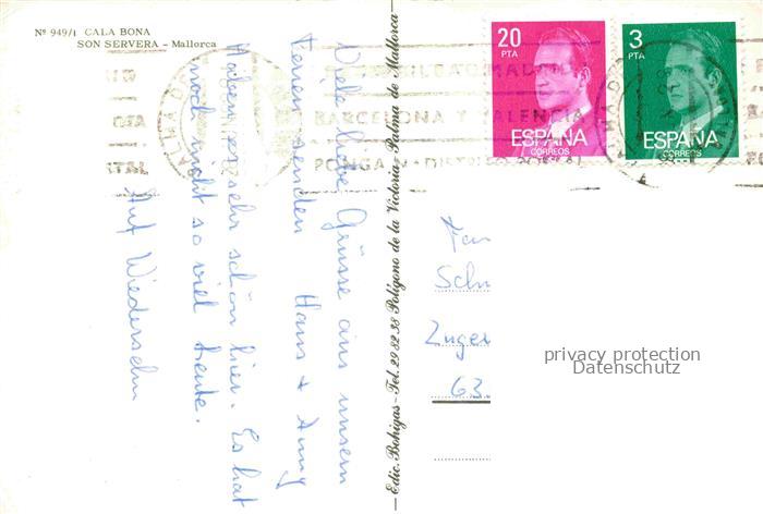 74110184 old postcard Son Servera Mallorca ES Fliegeraufnahme Cala Bona postalisch gelaufen Erhaltung siehe scans [WerneD78] KatCode: 11510