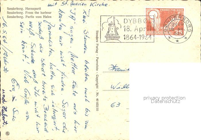 old postcard Sonderborg Hafen Marienkirche postalisch gelaufen Erhaltung siehe scans