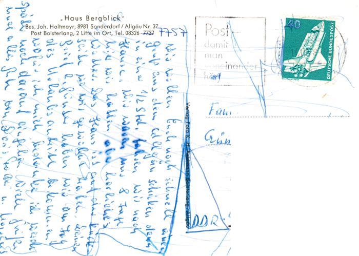 73864213 Sonderdorf Haus Bergblick Gaestehaus Pension Panorama Allgaeuer Alpen postalisch nicht gelaufen Erhaltung siehe scans [FriedD77] Frie Katcode 11110009780116
