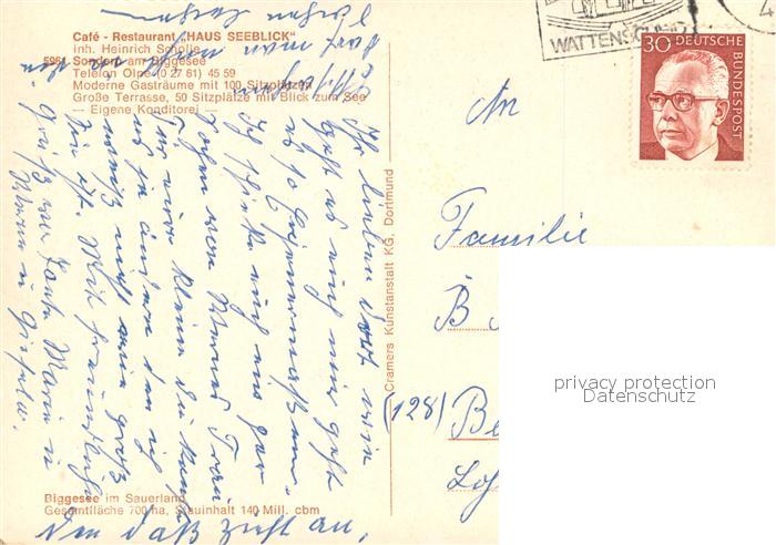73727655 alte Postkarte Sondern Biggesee Cafe Restaurant Haus Seeblick Bar Gastraum Panorama postalisch gelaufen Erhaltung siehe scans [WerneD78] KatCode: 11110005966024