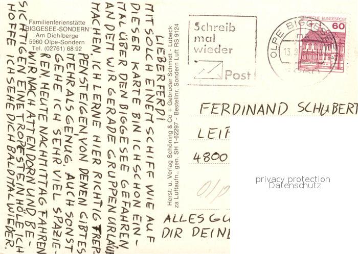 73080627 alte Postkarte Sondern Biggesee Familienferienstaette Fliegeraufnahme postalisch gelaufen Erhaltung siehe scans [KathaD81] KatCode: 11110005966024