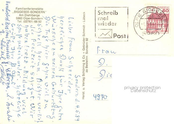 73636973 alte Postkarte Sondern Biggesee Ferienstaette Biggesee Sondern Restaurant Rezeption Kinderspielplatz postalisch gelaufen Erhaltung siehe scans [FriedD77] KatCode: 11110005966024