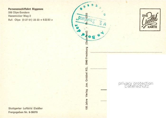 73248146 Sondern Biggesee Fliegeraufnahme postalisch nicht gelaufen Erhaltung siehe scans [FriedD77] KatCode: 11110005966024