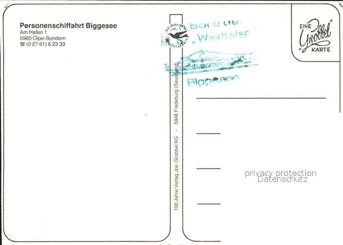 72522607 Sondern Biggesee Neu Sonderner Talbruecke Fahrgastschiff innen Personenschiffahrt Panorama Feuerwerk Staudamm Listertalbruecke MS Westfalen postalisch nicht gelaufen Erhaltung siehe scans KatCode: 11110005966024