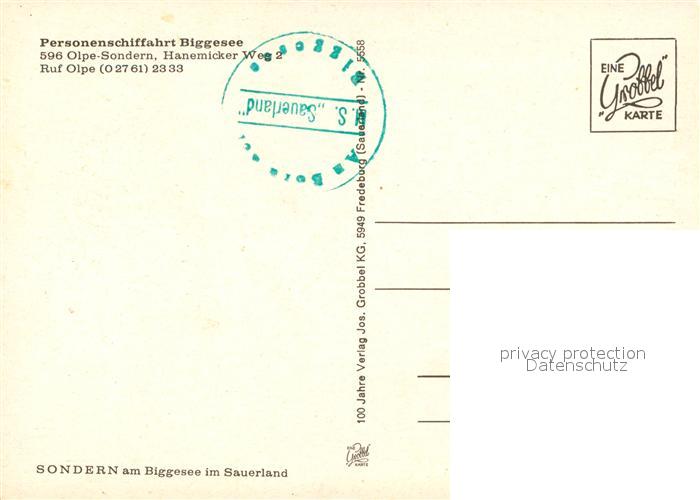73247084 Sondern Biggesee Personenschifffahrt postalisch nicht gelaufen Erhaltung siehe scans [KathaD81] KatCode: 11110005966024