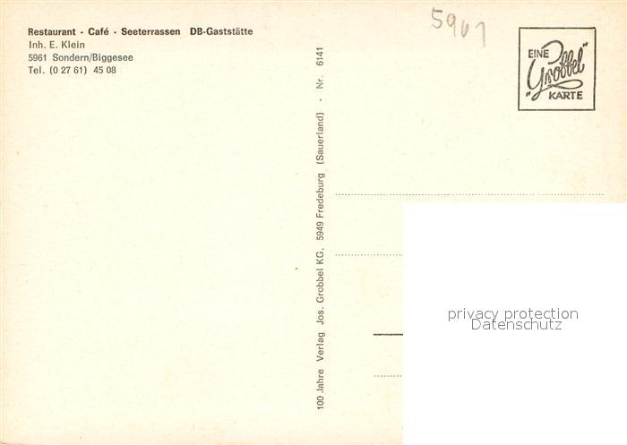 73646605 Sondern Biggesee Restaurant Cafe Seeterrassen DB-Gaststaette postalisch nicht gelaufen Erhaltung siehe scans [FriedD77] KatCode: 11110005966024