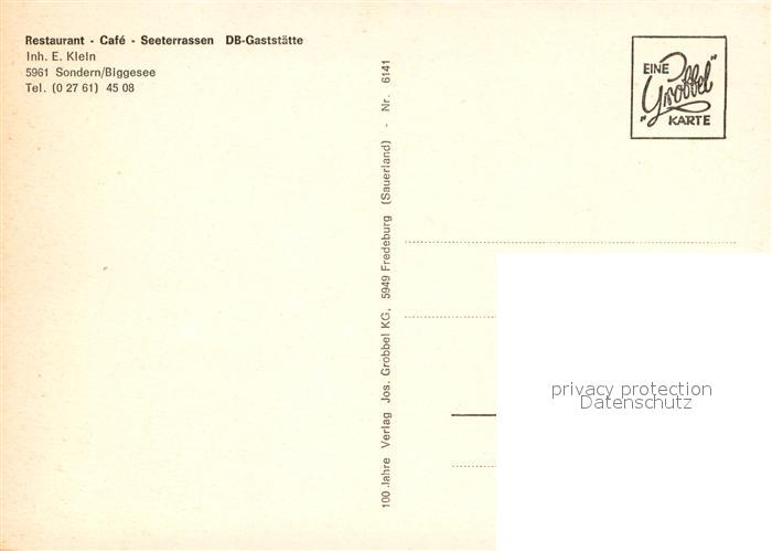 73646631 Sondern Biggesee Restaurant Cafe Seeterrassen DB-Gaststaetten Blick ueber den See postalisch nicht gelaufen Erhaltung siehe scans [FriedD77] KatCode: 11110005966024