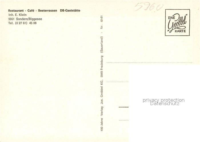 73662560 Sondern Biggesee Restaurant Cafe Seeterrassen Panorama postalisch nicht gelaufen Erhaltung siehe scans [FriedD77] KatCode: 11110005966024