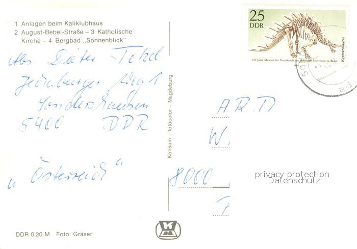 73670072 alte Postkarte Sondershausen Thueringen Anlagen beim Kaliklubhaus August Bebel Strasse Kirche Bergbad Sonnenblick Freibad postalisch gelaufen Erhaltung siehe scans [FriedD77] KatCode: 11110016065067