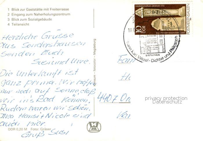 73750918 alte Postkarte Sondershausen Thueringen Gaststaette mit Freiterrasse Naherholungszentrum Sozialgebaeude Teilansicht postalisch gelaufen Erhaltung siehe scans [WerneD78] KatCode: 11110016065067