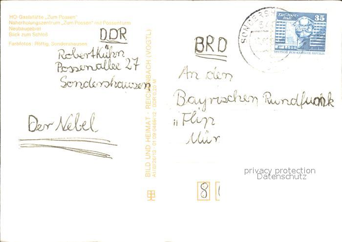72348317 alte Postkarte Sondershausen Thueringen HO-Gaststaette Zum Possen Schloss Possenturm postalisch gelaufen Erhaltung siehe scans KatCode: 11110016065067