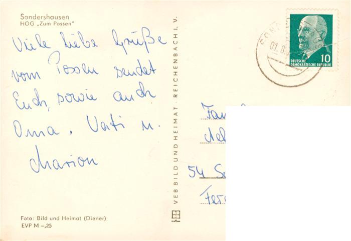 73872493 alte Postkarte Sondershausen Thueringen HOG zum Possen Gastraum postalisch gelaufen Erhaltung siehe scans [FriedD77] KatCode: 11110016065067