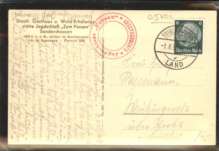 41428334 Sondershausen Thueringen Jagdschloss zum Possen Gartenterrasse Gasthaus Erholungsstätte H. Spanneus KatCode 11110016065067