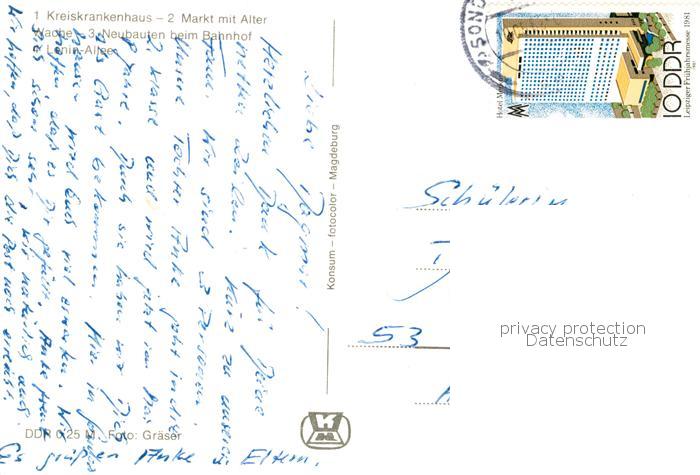 73873884 alte Postkarte Sondershausen Thueringen Kreiskrankenhaus Markt mit Alter Wache Neubauten beim Bahnhof Lenin Allee postalisch gelaufen Erhaltung siehe scans [WerneD78] KatCode: 11110016065067