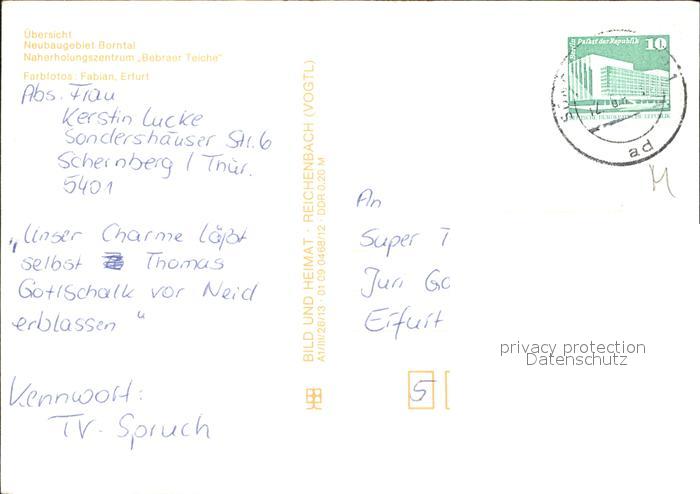 72337158 alte Postkarte Sondershausen Thueringen uebersicht Neubaugebiet Borntal Naherholungszentrum Bebraer Teiche postalisch gelaufen Erhaltung siehe scans KatCode: 11110016065067