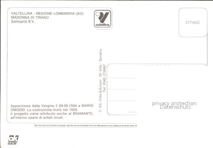 Sondrio Valtellina Madonna di Tirano postalisch nicht gelaufen Erhaltung siehe scans [KathaD79]