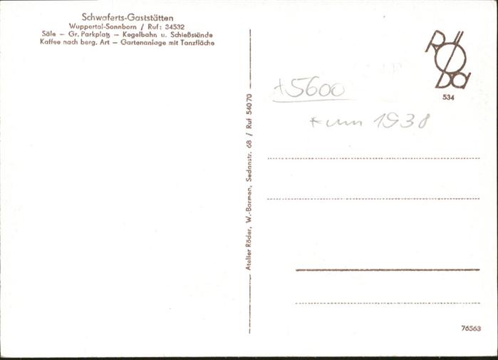 40955357 Sonnborn Elberfeld Schwaferts Gaststätte KatCode 11110005124000