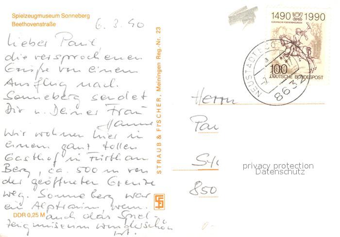 73036454 alte Postkarte Sonneberg Thueringen Beethovenstrasse postalisch gelaufen Erhaltung siehe scans [KathaD81] KatCode: 11110016072018
