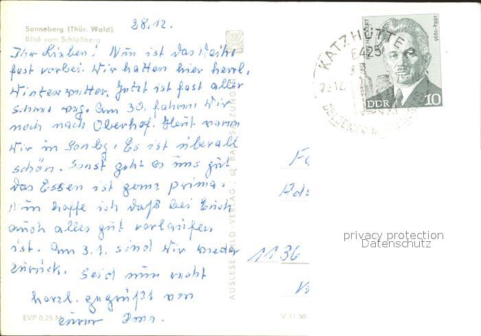 72152596 alte Postkarte Sonneberg Thueringen Blick vom Schlossberg postalisch gelaufen Erhaltung siehe scans KatCode: 11110016072018