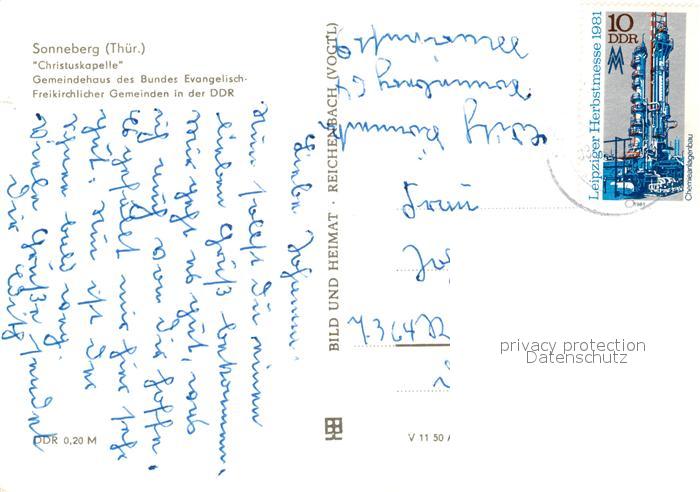 73033638 alte Postkarte Sonneberg Thueringen Christuskapelle postalisch gelaufen Erhaltung siehe scans [KathaD81] KatCode: 11110016072018