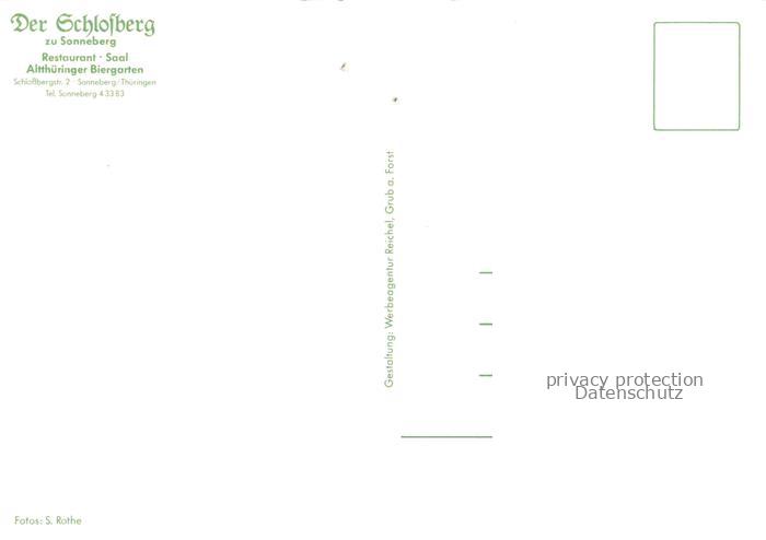 74025056 Sonneberg Thueringen Der Schlossberg Restaurant Altthueringer Biergarten postalisch nicht gelaufen Erhaltung siehe scans [FriedD77] KatCode: 11110016072018