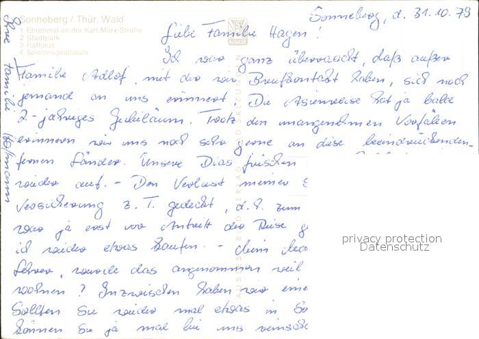 72288423 Sonneberg Thueringen Ehrenmal Karl- Marx- Strasse Stadtpark Rathaus postalisch nicht gelaufen Erhaltung siehe scans KatCode: 11110016072018