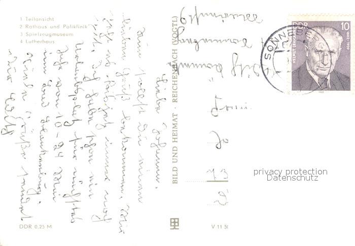 73034405 alte Postkarte Sonneberg Thueringen Panorama Rathaus Poliklinik Spielzeugmuseum Lutherhaus postalisch gelaufen Erhaltung siehe scans [WerneD78] KatCode: 11110016072018