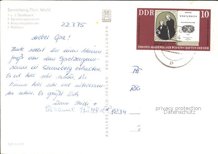 72411488 alte Postkarte Sonneberg Thueringen Stadtpark Spielzeugmuseum Kreisratsgebaeude Rathaus postalisch gelaufen Erhaltung siehe scans KatCode: 11110016072018