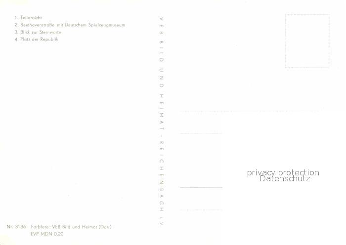 72616779 Sonneberg Thueringen Teilansicht Beethovenstr mit Dt Spielzeugmuseum Sternwarte Platz der Republik postalisch nicht gelaufen Erhaltung siehe scans [WerneD78] KatCode: 11110016072018