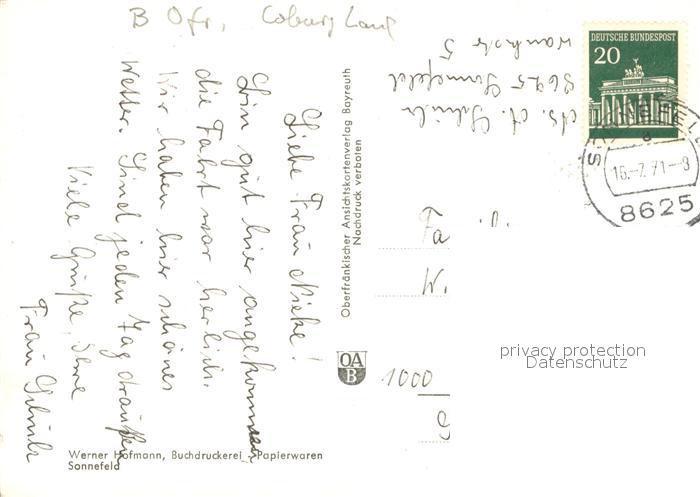 73643100 alte Postkarte Sonnefeld Ortsansichten Partie am Wasser Schwimmbad postalisch gelaufen Erhaltung siehe scans [FriedD77] KatCode: 11110009473166