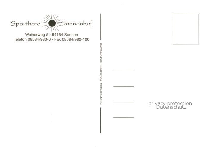 73107418 Sonnen Niederbayern Sporthotel Sonnenhof postalisch nicht gelaufen Erhaltung siehe scans [NatalD47] KatCode: 11110009275148