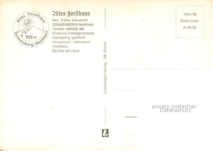 73719474 Sonnenberg Harz Altes Forsthaus postalisch nicht gelaufen Erhaltung siehe scans [WerneD78] KatCode: 11110003153010