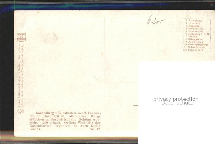 41969912 Sonnenberg Wiesbaden Burg Ruine Wappen Kuenstlerkarte postalisch nicht gelaufen Erhaltung siehe scans KatCode: 11110006414000