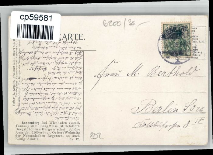 70784055 alte Postkarte Sonnenberg Wiesbaden Sonnenberg Kuenstler G Rothgeb postalisch gelaufen KatCode: 11110006414000