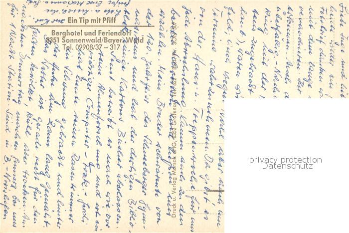 73755879 alte Postkarte Sonnenwald Schoefweg Berghotel und Feriendorf Sonnenwald Hallenbad postalisch gelaufen Erhaltung siehe scans [FriedD77] KatCode: 11110009272145