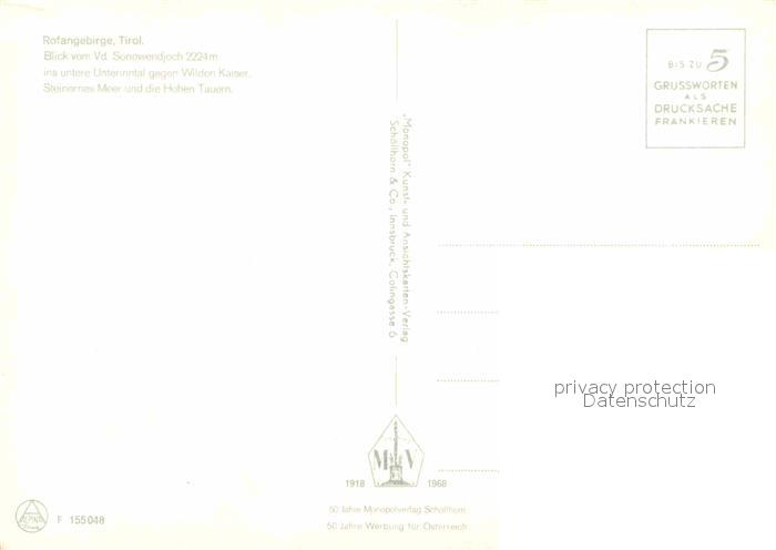 72814343 Sonnwendjoch Hohe Tauern Wilder Kaiser postalisch nicht gelaufen Erhaltung siehe scans [AndreD76] KatCode: 11390122031838