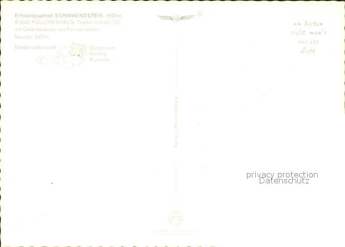 72210655 Sonnwendstein mit Gedenkkapelle und Fernsehsender Raxalpe Fliegeraufnahme postalisch nicht gelaufen Erhaltung siehe scans KatCode: 11390