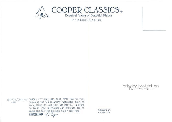 72583934 Sonoma City Hall postalisch nicht gelaufen Erhaltung siehe scans [LiesaD40] KatCode: 14140050000000